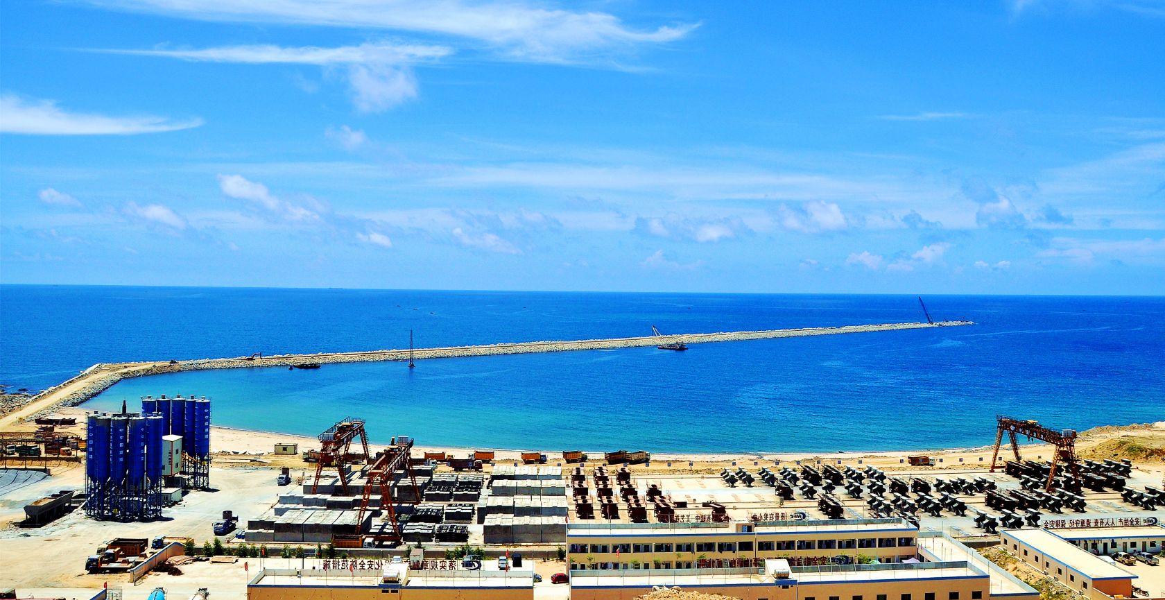 博賀新港區(qū)東西防波堤建設場面