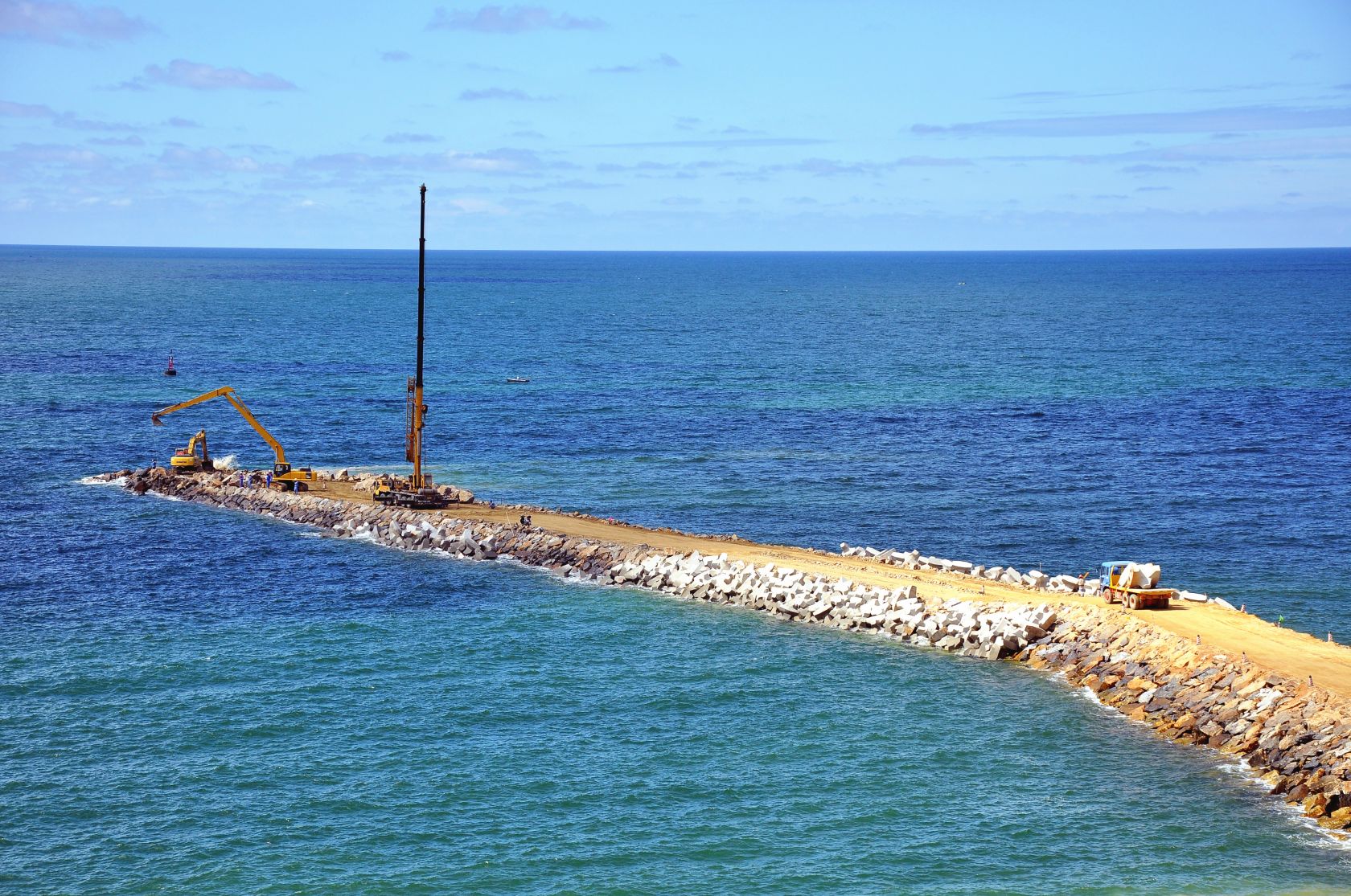 博賀新港區(qū)東防波堤建設現(xiàn)場