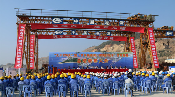 陳堯在講話中對全體參建人員迎接挑戰(zhàn),全力以赴抗臺復產(chǎn),爭分奪秒推進項目建設的精神給予高度贊揚。他指出,防波堤項目是博賀新港區(qū)建設的基礎,是新區(qū)建設發(fā)展的基礎,是基礎中的基礎,只有防波堤建好了,才能托起茂名港口夢。他希望全體參建人員,在超額完成2015年建設任務的基礎上,開展新的征程,加快建設速度,力爭提前完成2016年建設任務,為新區(qū)發(fā)展奠定堅實的基礎。