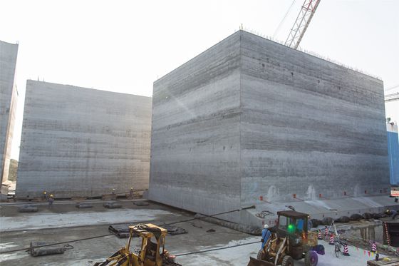 防波堤項目建設(shè)所用的每件沉箱由鋼筋混凝土澆筑而成,長26米、寬24米、高17米、重4475噸。放在地上,就如同一棟占地面積623平方米、高6層的樓房。這些沉箱無論重量還是體積,在粵西地區(qū)港口建設(shè)史上均為最大?偝邪鼏挝恢袊蹫彻こ探ㄔO(shè)公司有關(guān)負責(zé)人告訴記者,防波堤項目建設(shè)需要6件沉箱,目前已全部預(yù)制,均已具備出運安裝的條件。由于項目均在海上施工,沉箱的出運安裝對天氣、潮汐、風(fēng)量有著嚴格的要求。半潛駁船出運安裝一件沉箱需用26小時,考慮各工序受水位、海況影響,不能連續(xù)作業(yè),計劃每3天出運安裝一件沉箱,安裝完6件沉箱,大概需要18天。