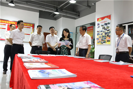 向欣參觀黨員活動(dòng)室,翻閱《茂名港》內(nèi)刊