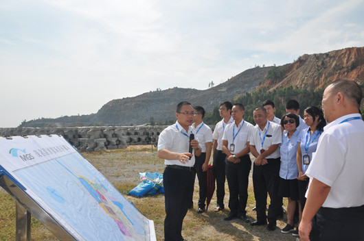 大家首先來到博賀新港區(qū)東防波堤項目建設(shè)現(xiàn)場。在項目展示平臺上,羅大方總裁親自向大家闡釋了集團“以深水大港為依托,以石化倉儲物流產(chǎn)業(yè)為支柱,揚長避短,走差異化發(fā)展道路”的戰(zhàn)略發(fā)展規(guī)劃,詳細介紹了博賀港區(qū)碼頭的建設(shè)情況,并對控股公司參觀學(xué)習(xí)人員表達了殷切期望,勉勵控股公司同志在工作中加強學(xué)習(xí),為集團未來發(fā)展需要做好能力儲備。