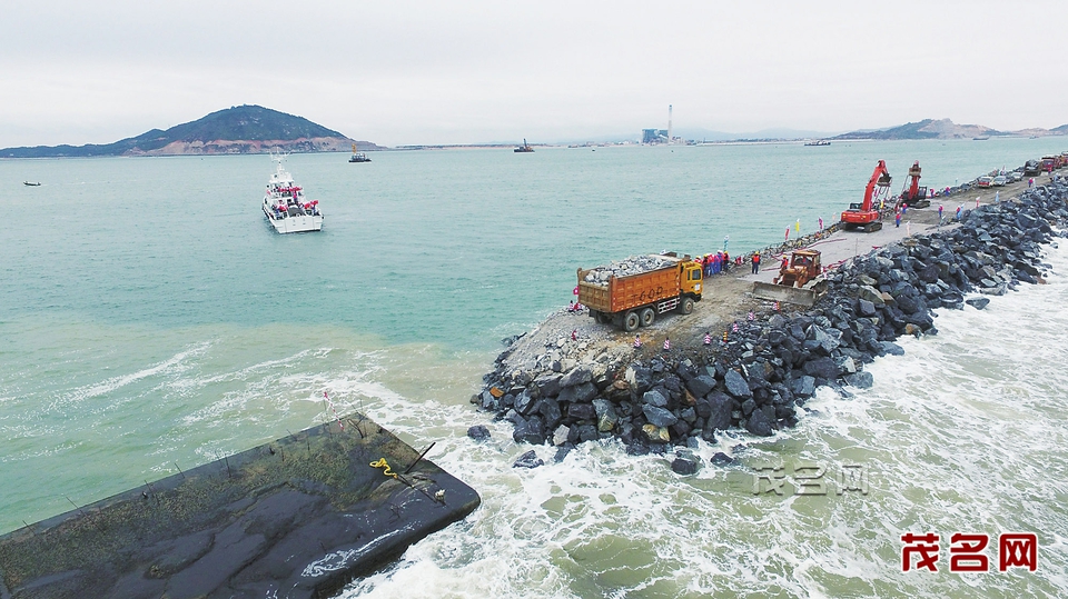 茂名港博賀新港區(qū)東西防波堤合龍。 茂名日?qǐng)?bào)記者丘立賀 劉付思明攝