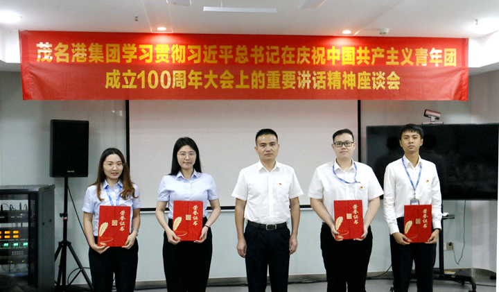 6月9日上午,茂名港集團(tuán)團(tuán)委組織召開學(xué)習(xí)貫徹習(xí)近平總書記在慶祝中國(guó)共產(chǎn)主義青年團(tuán)成立100周年大會(huì)上的重要講話精神座談會(huì)。會(huì)議深入學(xué)習(xí)貫徹習(xí)近平總書記重要講話精神和全省、全市有關(guān)會(huì)議精神,進(jìn)一步動(dòng)員集團(tuán)廣大青年堅(jiān)定不移聽黨話、跟黨走,忠誠(chéng)擁護(hù)“兩個(gè)確立”、堅(jiān)決做到“兩個(gè)維護(hù)”,在集團(tuán)“打造南海能源新通道”的奮進(jìn)新征程中擔(dān)起青年責(zé)任、展現(xiàn)青年作為。集團(tuán)黨委書記、董事長(zhǎng)王志華,集團(tuán)黨委副書記、總裁肖炳璋,有關(guān)部門負(fù)責(zé)人、集團(tuán)機(jī)關(guān)各部室、下屬企業(yè)青年代表共30余人參加會(huì)議。